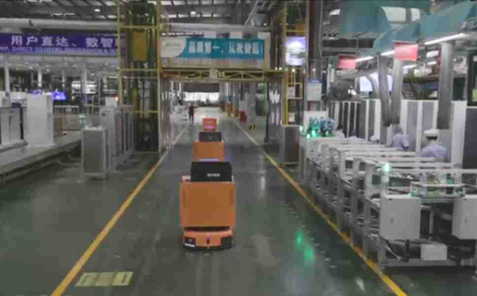 为车载冰箱物流配送打造的智能解决方案,,包含产中物流通过潜伏举升AMR搬运至线边,,,,产后成品物流智能仓储,,,流程包含产中物流智能齐套入库,,,,线边安灯叫料AMR智能配送至线边,,,成品入库、、出库,,,通过无人堆高车机器人,,,,智能仓储管理替代人工作业管理,,,,实现更高存储、、更高效率、、、、更具柔性化的解决方案。。。